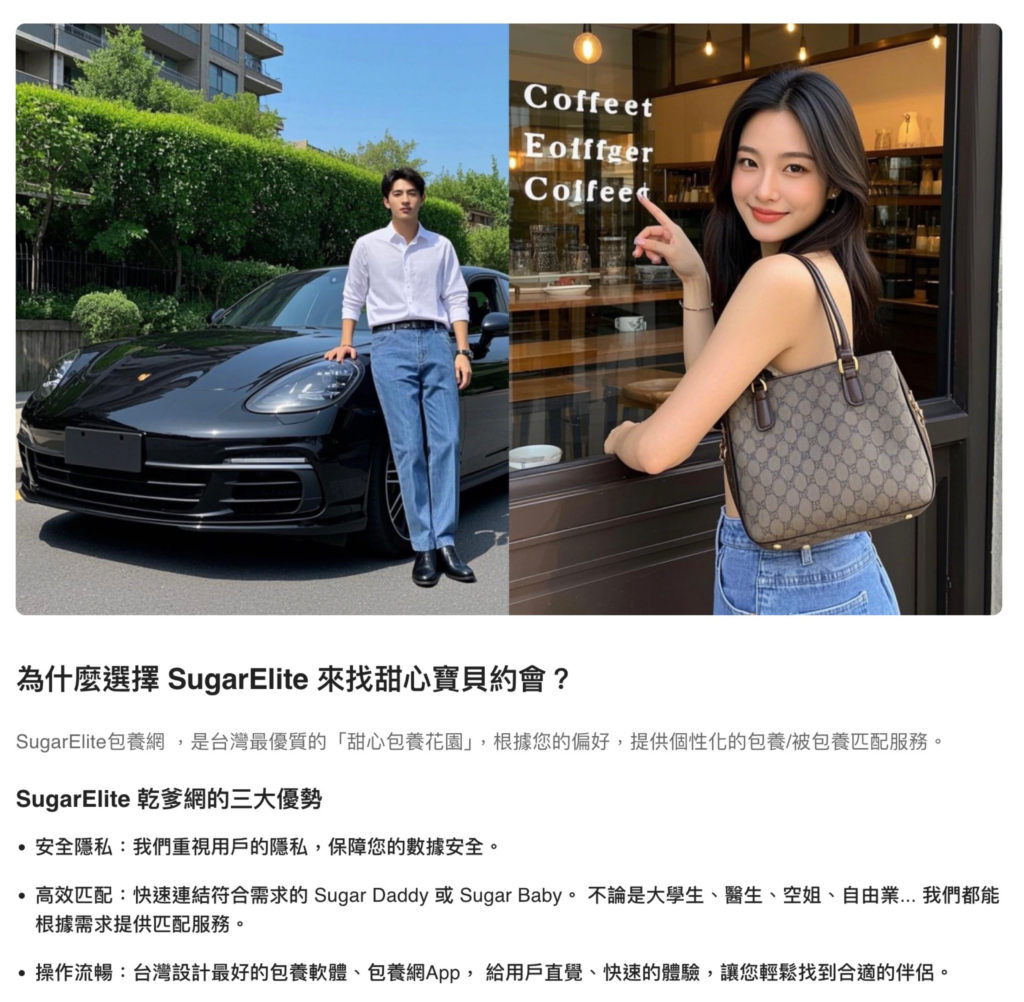 SugarElite 甜心包養網 (網址:https://sugar-elite.co/ )是這兩年新出來的平台。真人認證女生和男生財力,主打安全,和PS包養網、SD包養網有點像,但是定位上以傳訊快速、真人管理為主打。這幾年在 Dcard、Yahoo 的「包養網」話題討論度也挺高